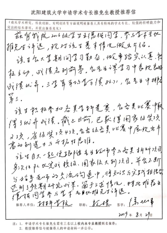 经学生申报,材料学院推荐优秀应届本科毕业生2020年免试攻读研究生遴选工作小组对申报材料进行了审核。按学校文件要求,现将符合申报条件学生的平均学分绩、综合成绩、综合素质奖励分项目明细、学术特长推免生证明材料和教授推荐信等信息予以公示。