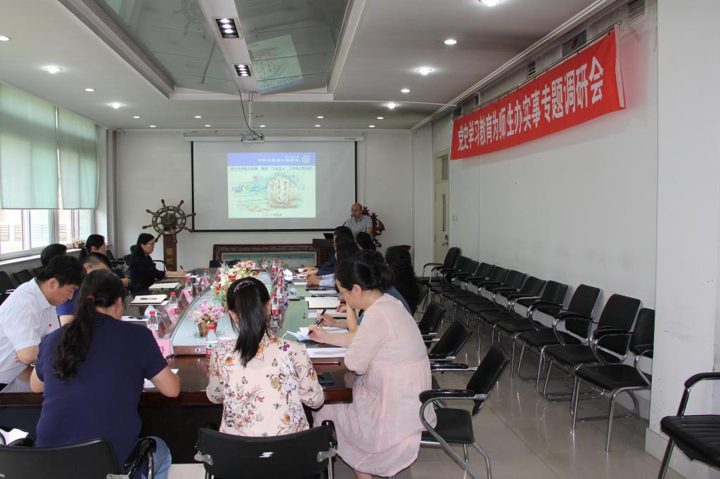 会上,学院院长徐长伟围绕学院基本情况、为师生办实事和推进“三全育人”工作开展情况、“十四五”育人工作构想、亟待解决的问题等四个方面进行了汇报。学院党委书记李敏从健全完善学院重要决策制度,发挥学院党组织在育人重大事项的政治把关作用;将育人育才与党建工作对接融合,发挥学院党组织的政治保障功能;以党建带团,发挥党组织、团组织协同育人的组织优势三个方面进行了汇报。最后与会教师代表结合自身岗位实际,总结了育人工作中的收获,同时提出了相关待解决的困惑或需求。