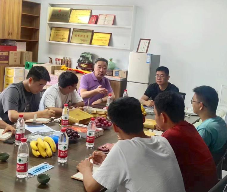 感恩母校忆旧貌,笑谈友情聚新颜。团队到达实践地点后,首先向校友们致以真诚的问候与祝福,并传递母校对他们的关切之情;河南校友们也对于建大学弟学妹们的到来表示了热烈欢迎,并由校友代表--河南天立建筑工程技术有限公司董事长高空亮学长代表发言:高空亮学长以“回眸知感恩,共创新未来”的思想,简练表达了对母校深厚感情,对校友企业家之间、校友与母校之间的期望,之后又简单介绍了天立建筑公司,公司是专业从事高层及超高层建筑使用的附着式升降脚手架技术研发、产品生产、销售、租赁及工程施工的专业化建筑工程企业,更可以为选择天力建筑公司作为实践地点,以便给材料学院的学子们提供了更加专业的引导。随后,校友们为成员们展示近些年来公司的企业文化,同时对学习、就业、读研和有关企业结构、企业发展方向等问题进行详尽的解答。